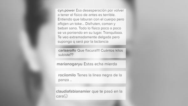 “¿Qué te pasó en la cara?”, fue el primer mensaje agresivo que apuntó contra Vanina, que rápidamente le respondió. “Fui mamá hace menos de un mes y prácticamente no duermo. Eso me pasó!”, replicó la bailarina.