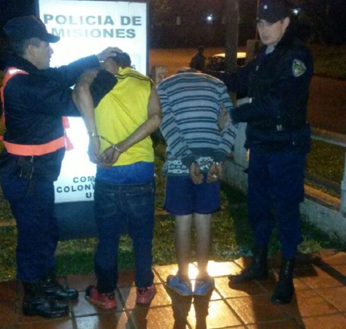 Por el hecho, fueron detenidos: Marcelo F. de (34) y Nicolás B. (16), quienes quedaron a disposición del Juzgado de Paz por infracción a la Ley XIV-Nro 5.