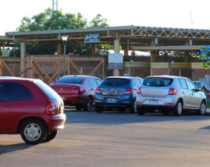 En la noche del martes y madrugada del miércoles, la fila de autos para volver a la Argentina cubría la doble mano de la encarnacena Avenida Irrazábal.