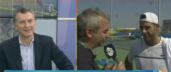 El presidente de la Nación, Mauricio Macri, visitó los estudios de TyC Sports desde el centro de prensa de Río de Janeiro y, entre otras gratas sorpresas, pudo dialogar con el tenista tandilense Juan Martín Del Potro.
