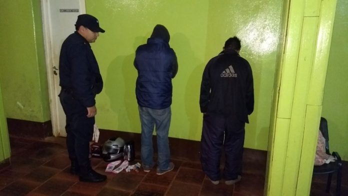 Con los datos aportados por testigos y los recabados, los uniformados divisaron a los hombres en un conocido predio deportivo de la zona, quienes intentaron huir siendo detenidos y secuestrando en su poder 01 pava eléctrica, 01 casco de motocicleta, 01 radio y prendas de vestir varias, los cuales fueron denunciados como robados del domicilio de Roxana I. (42) unas horas antes.